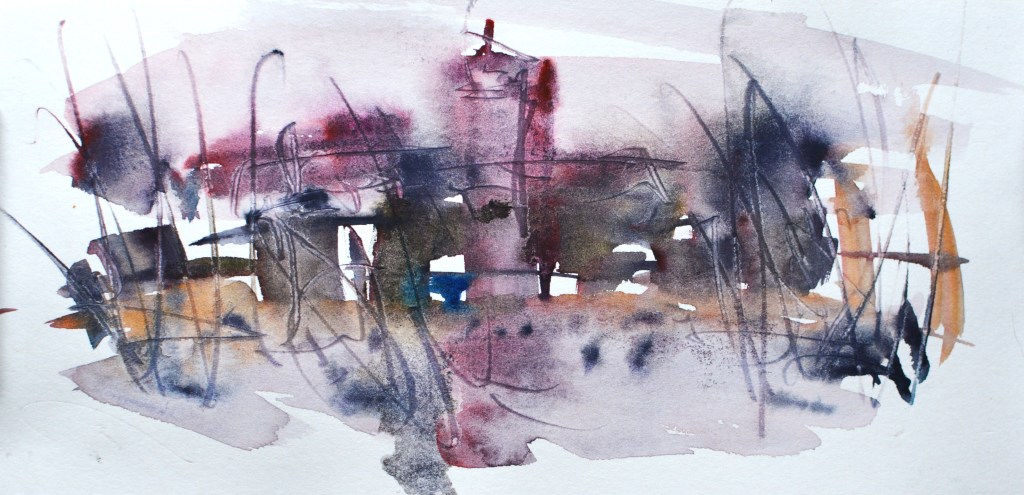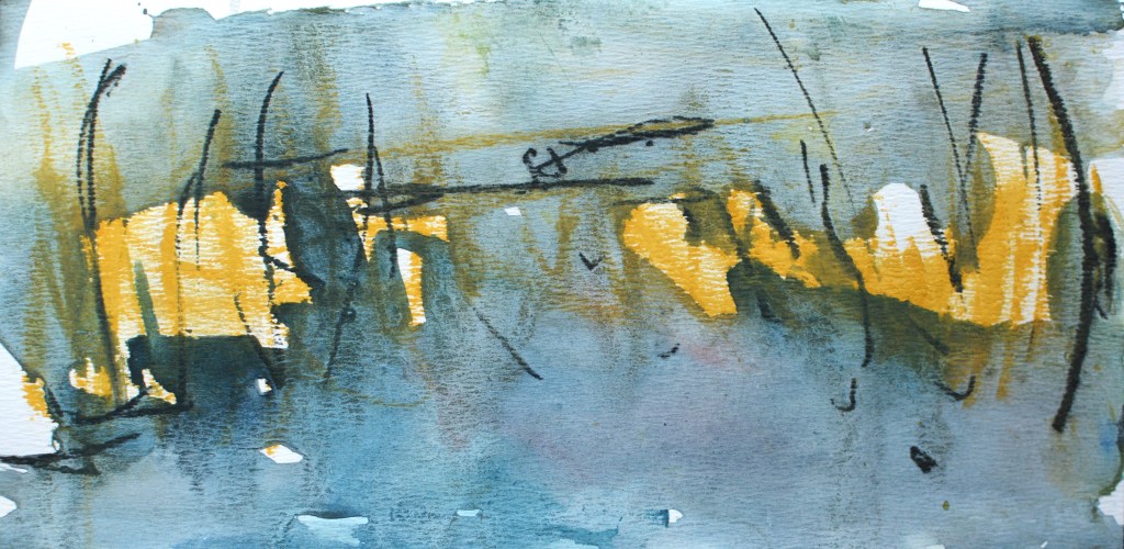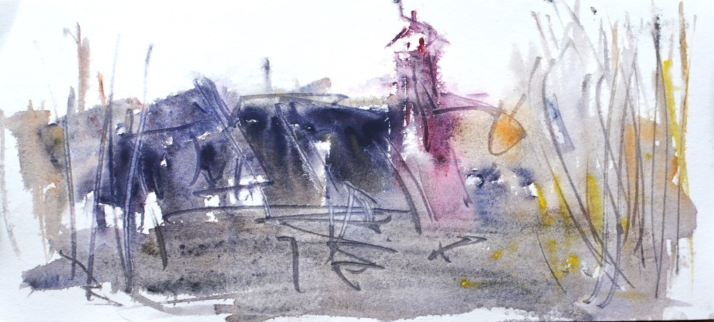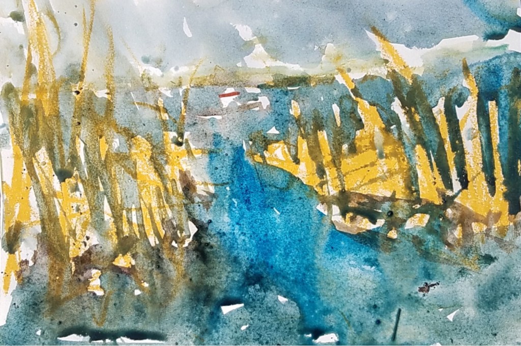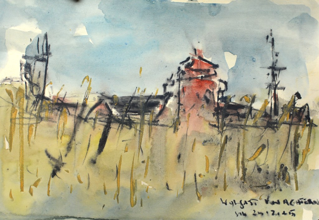 Winter sketches on a sunny day at the lovely back waters around Wolgast at the Baltic sea. See the lively path from reality to abstraction through watercolour flows and charcoal drawing crossovers.